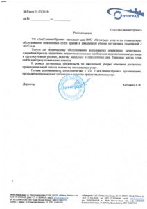 ОАО «Лидское пиво» имело опыт сотрудничества с Унитарным предприятием «ТехКлинингПроект» в рамках оказания услуг по предоставлению персонала для выполнения работ по стикеровке продукции в сентябре-октябре 2019 года. Персонал был подобран быстро, услуги оказаны своевременно и качественно. Со стороны подрядчика был...