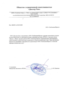ООО «Дасслер Тим» сотрудничает с ООО «ТехКлинингПроект» в рамках заключения договора на выполнение работ по ежедневной уборке помещения магазина «PUMA» в торговом центре «Замок» г. Минск. За время работы ООО «ТехКлинингПроект» зарекомендовал себя надежным, ответственным и добросовестным подрядчиком в области...